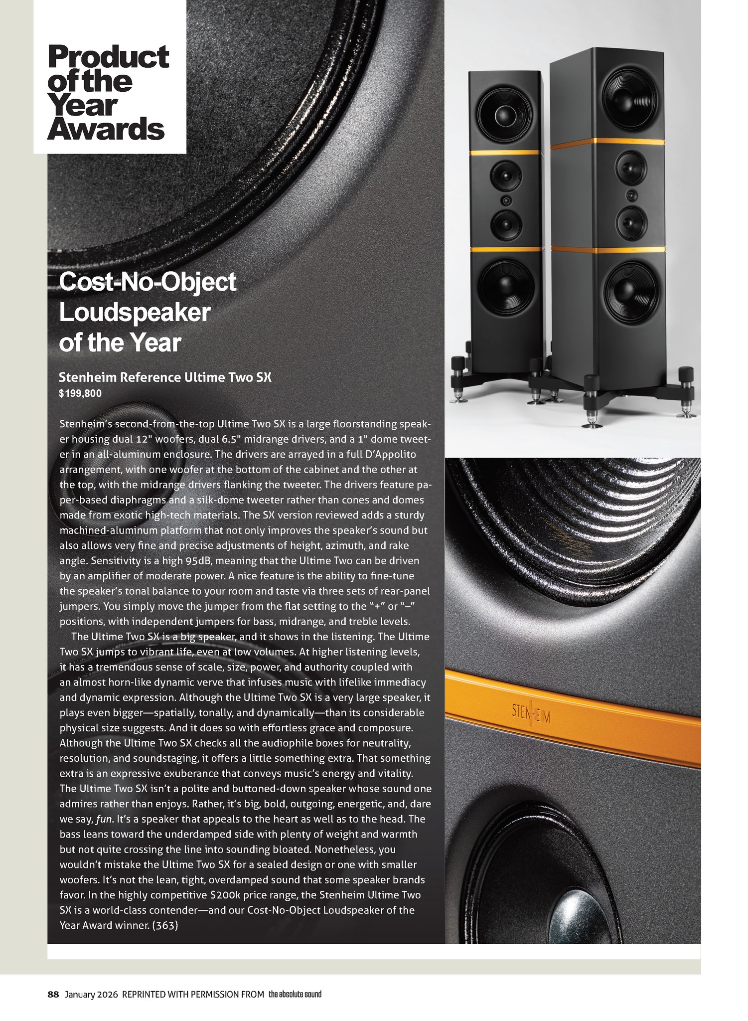 Stenheim donc, après avoir décroché le très envié titre d’Enceinte de l’année 2025, se voit décerné le titre de « Product of the Year 2025 » par la prestigieuse revue « The Absolute Sound« .